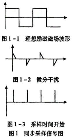 在現(xiàn)行的電磁流量計設(shè)計中,低頻矩形波勵磁結(jié)合了直流勵磁和交流勵磁的優(yōu)點,成為主要勵磁方式之一。在低頻勵磁方式下其干擾主要表現(xiàn)為:由勵磁電流突變產(chǎn)生的微分干擾信號。理想勵磁磁場信號如圖1-1所示,為低頻矩形波,實際上隨著勵磁電流變化(dI/dt)磁場上產(chǎn)生微分干擾信號,如圖1-2,可以看到隨著電流的穩(wěn)定,干擾信號隨之消失,因此同步采樣技術(shù)可以有效抑止微分干擾信號。實際設(shè)計中模數(shù)轉(zhuǎn)化器使用AD公司的24位sigma delta模數(shù)轉(zhuǎn)化器AD7714。AD7714可以分別采用硬件和軟件方式進行采樣開始時間控制從而實現(xiàn)同步采樣。采用軟件方式時,當控制寄存器中FSYNC位為邏輯1時,模數(shù)轉(zhuǎn)換器處于復(fù)位狀態(tài);向該位寫邏輯0時,器件開始采樣輸入信號。在應(yīng)用中,低頻勵磁信號由MSP430單片機內(nèi)部定時器產(chǎn)生,同時產(chǎn)生采樣信號。如圖1所示,采樣開始時間滯后勵磁信號1/4個周期。