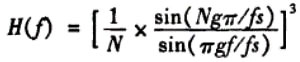 已知工頻耦合噪聲基波頻率為50Hz,因此可以采用模擬或數(shù)字濾波器使濾波器帶寬限制在50Hz以內(nèi)以抑制噪聲。在實際應(yīng)用中使用 sigma delta模數(shù)轉(zhuǎn)換器AD74內(nèi)部包含的數(shù)字濾波模塊,數(shù)字濾波器相對模擬濾波器除具有靈活性高、參數(shù)設(shè)置方便等特點還可以降低AD轉(zhuǎn)換期間引人的噪聲。AD774數(shù)字濾波器為(sinr/x)3低通濾波器,其在頻域的傳遞函數(shù)為:
