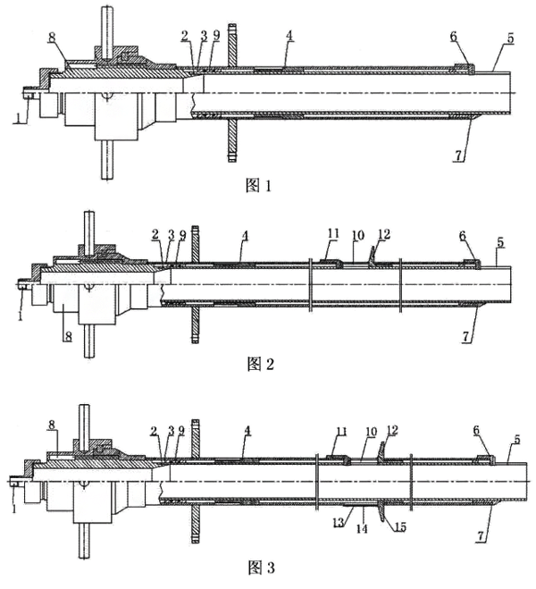 圖中,1-接管咀,2-測(cè)量管,3-保護(hù)管,4-滑動(dòng)定位組件,5-末端感壓口,6-**鏟刀,7-第二鏟刀,8-往復(fù)直線(xiàn)運(yùn)動(dòng)機(jī)構(gòu),9-滑動(dòng)密封裝置,10-中間感壓口,11-第三鏟刀,12-第四鏟刀,13-輔助開(kāi)口,14-靜壓外管蓋板,15-第五鏟刀。