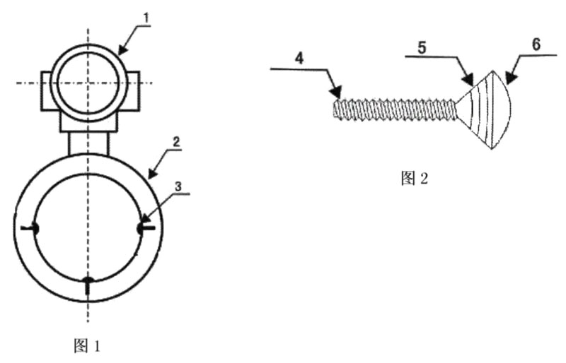 在實(shí)施例中,陀螺式電極智能電磁流量計(jì)包含傳感器筒體2、主機(jī)1、電極3,主機(jī)設(shè)置在傳感器筒體上,傳感器為筒狀結(jié)構(gòu),電極為陀螺式結(jié)構(gòu),并有電極桿4電極桿上設(shè)有螺紋,電極布置在傳感器筒體內(nèi),電極桿與傳感器筒體之間通過螺紋連接。電極包含電極杄4、電極托臺(tái)5、接液面6,電極托臺(tái)與接液面一起構(gòu)成陀螺結(jié)構(gòu),電極托臺(tái)與電極桿連為一體;接液面是電極與被測(cè)液體接觸面。電極桿上的螺紋旋進(jìn)傳感器筒體內(nèi)的內(nèi)襯材料里,電極桿的長(zhǎng)度盡量長(zhǎng)一些。電極托臺(tái)的形狀為錐型,電極托臺(tái)外緣與電極桿中心線成45°角,與接液面一起構(gòu)成陀螺結(jié)構(gòu)。
