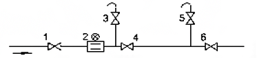 1, 4, 6截止閥; 2 流量傳感器 3, 5 泄漏監視閥