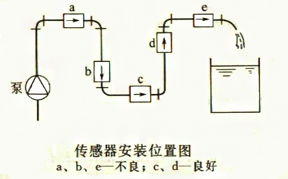 1) 測(cè)量混合相流體時(shí),選擇不會(huì)引起相分離的場(chǎng)所,測(cè)量雙組分液體時(shí),避免裝在混合尚未均勻的下游,測(cè)量化學(xué)反應(yīng)管道時(shí),要裝在反應(yīng)充分完成段的下游