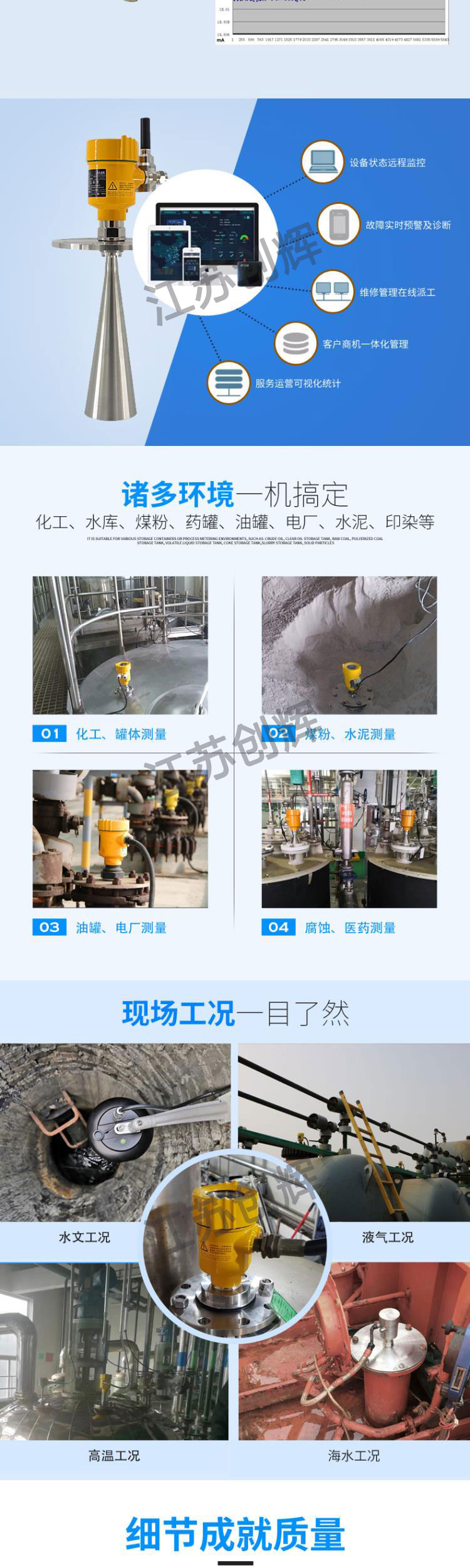 CH-RD900系列傳感器是26G防腐雷達式物位測量儀表,測量ZUI大距離可達70米。天線被進一步優化處理,新型快速的微處理器可以進行更高速率的信號分析處理,使得儀表可以用于反應釜、固體料倉等一些復雜的測量條件。