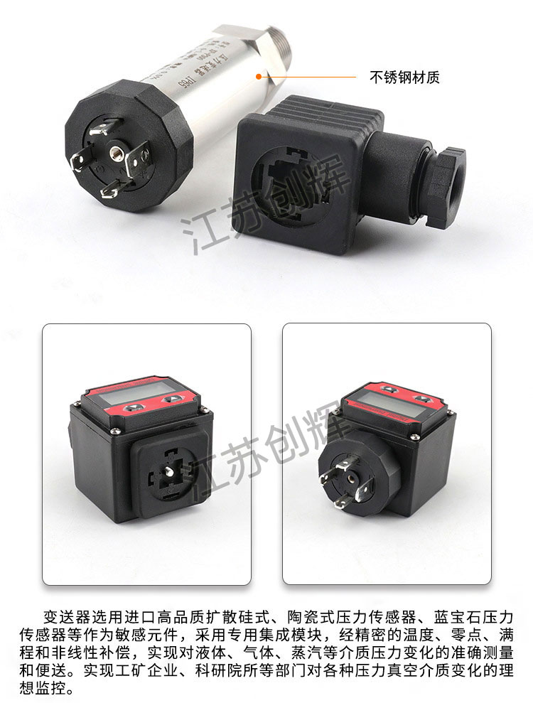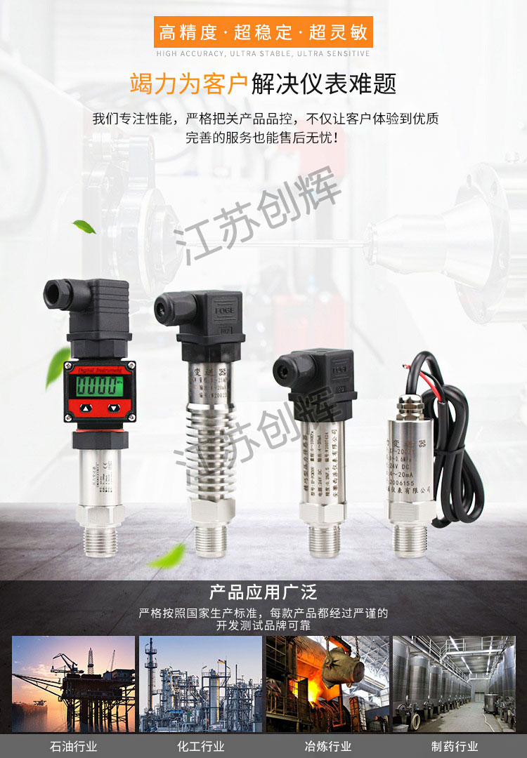 精巧型壓力變送器,采用金屬擴散硅傳感器,金屬的延展性、精度及各方面的綜合指標是很多其他類型傳感器無可比擬的。傳感器選用美國GE集團NOVA公司進口壓力傳感器或者MICROSENSOR公司合資壓力傳感器,產品由高精度傳感器和高集成化電子線路及不銹鋼外殼組成。**應用于空調設備、恒壓供水、自動化控制、空壓機、制冷設備、水處理系統、液壓系統、工程機械、發酵罐過程檢測等。